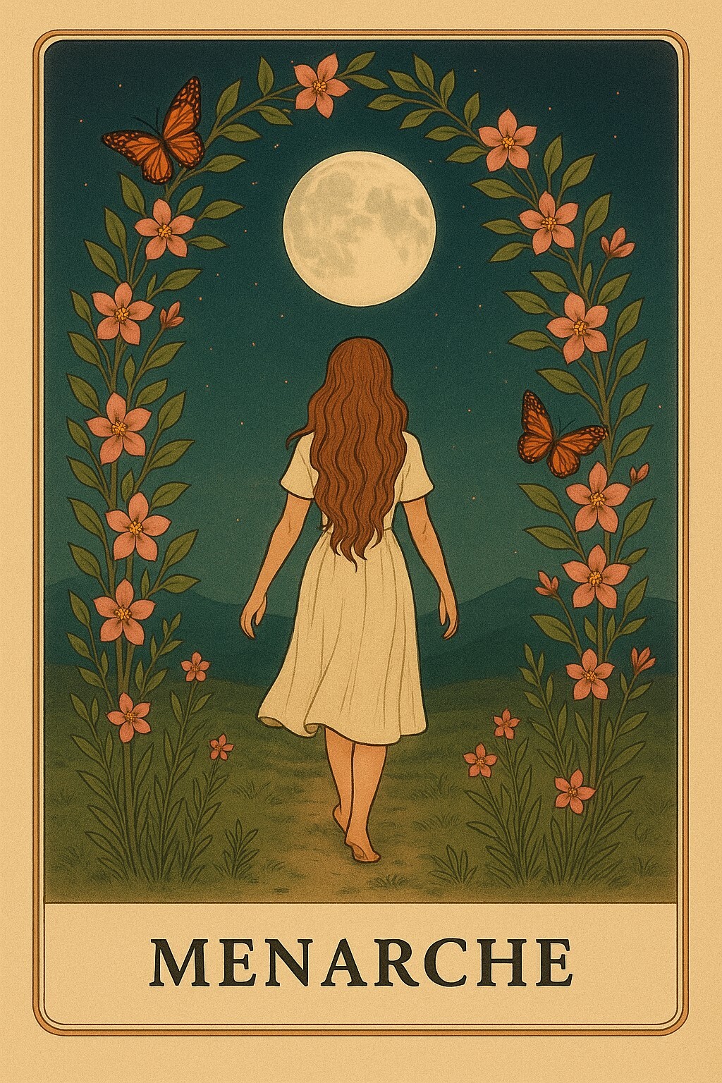 Menarche, de eerste menstruatie, is een belangrijk moment om een meisje in te wijden in een aantal essentiële levenslessen. Er verandert veel in haar lichaam en hoofd. Haar interesses verschuiven, haar behoeftes worden anders, en de wereld om haar heen wordt steeds uitnodigender. Om haar in deze fase vrij te laten ontdekken – wat essentieel is – heeft ze een rugzakje nodig met een soort rode draad erin.
